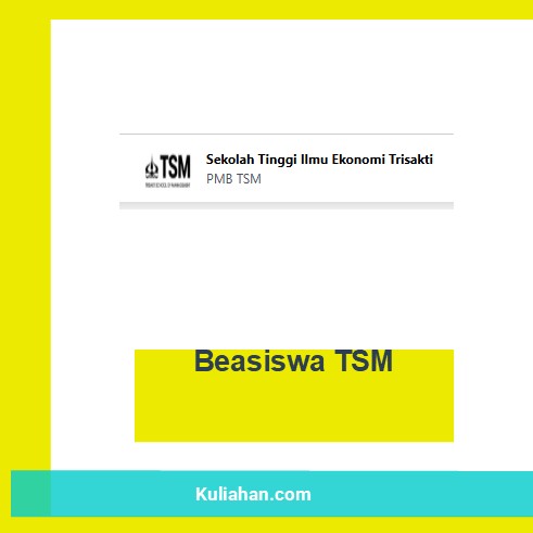 Program Beasiswa TSM ditujukan bagi lulusan SMA/SMK/sederajat yang ingin melanjutkan pendidikan ke jenjang perguruan tinggi. Melalui program ini, peserta dapat melanjutkan kuliah di Sekolah Tinggi Ilmu Ekonomi (STIE) Trisakti atau Trisakti School of Management (TSM). TSM merupakan perguruan tinggi yang telah meraih akreditasi A untuk program studi S1 Akuntansi dan S1 Manajemen.